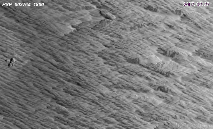 horpad![]() Regisztrált tag #120 Regisztrált: h febr 07 2011, 02:06Üzenetek: 674 | ….. akkor hát lássuk. Horvai Ferenc cikke Katt ide! erre az írásra épül Katt ide! , amely viszont ezt az elemzést Katt ide! veszi alapul. - Na ez érdekes. Alfred McEwen-nek a tanulmány megírása idején (2007 június 4) még csupán egyetlen felvételből (PSP_002764_1800) kellett levonni a következtetéseit, mely szerint azok a sötét alakzatok egy közeli klaszter-becsapódás következményei. Az általa szerkesztett kompozit Katt ide! csökkentett méretben itt látható. ![]() Kaylan Burleigh csapata viszont már további két felvételt Katt ide! és Katt ide! is figyelembe vehetett volna a jelenség tisztázására, helyette inkább csak plagizáltak. Számukra nincs feloldozás. - Mert mi is történt valójában? A helyszín egy kiterjedt yardang-mező, amely igen vastag – talán többszáz méter – vulkáni hamurétegből áll. Ennek farigcsálása még a gyenge marsi szél számára sem jelent komoly kihívást. Aprítja is rendesen. Az alábbi animáció bal oldalán a gyanúsítottként megjelölt krátercsoport, jobbra pedig a porlavinaként jegyzett sötét képződmények láthatók. Megfigyelhető, hogy félév alatt ugyan elég kevés a változás, három év elteltével viszont annál több átalakulás volt ebben a 240m*145m-es képmezőben. ![]() Ha ezek a sötét sávok valóban a lezúduló por nyomai lennének, akkor a szélnek már az első tavasszal el kellett vona mosnia őket. í‰s még mindig ott vannak…. - De a csilli még csak ez után kerül a palacsintába.... Ilyen képződmények az északi szélességi körök mentén is megfigyelhetők, egészen más éghajlati viszonyok mellett. Igaz, ezek jóval nagyobbak. Az idősorrendbe válogatott képek középső eleme 1236m széles. ![]() (A kép egy kicsit csalóka, mert oldalnézetet sugall, pedig a felvételek mindegyike szinte abszolút felülnézetből készült, így azok a sötét ’pálcikák’ is mind a talajon fekszenek.) A képsorból viszont kiderül, hogy nem egy pillanatszerű drámai esemény szülöttei, mert az idő múlásával változnak, növekednek. Tehát Alfred McEwen sötét alakzatai sem feltétlen kell, hogy egy becsapódási lökéshullám hatására keletkezett porlavinák legyenek. Ez is egy olyan rejtélye a vörös bolygónak, amely máig megoldásra vár…. | ||