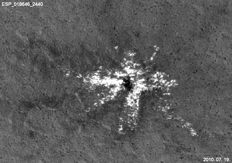 horpad![]() Regisztrált tag #120 Regisztrált: h febr 07 2011, 02:06Üzenetek: 674 | Ez a becsapódás először 2010 májusában került lencsevégre. A Viking Orbiter 1978-as felvételén még nem szerepel. Katt ide! ![]() | ||