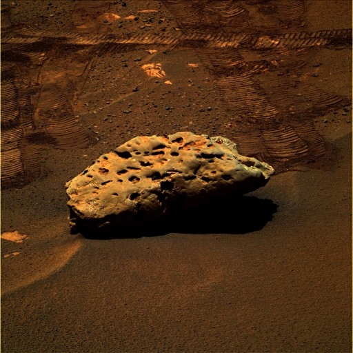![]() Regisztrált tag #409 Regisztrált: v febr 05 2012, 09:25Üzenetek: 172 | ....vagy színesben. Voilá.. Kissé poros, de láthatóan meteor, nem helyi kőzet. (a színes kép a horpad által belibkelt ff képhez képes a meteor túlsó oldaláról készült. Jól láthatók az Oppy toporgó keréknyomai, ahogy rácsodálkozott az égi jövevényre... ). <div class='spacer'> </div> | ||