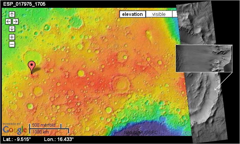 horpad![]() Regisztrált tag #120 Regisztrált: h febr 07 2011, 02:06Üzenetek: 674 | Legördülő kövek nyomaira bukkant a Hirise... Na nem most, még 2010 májusában. Katt ide! A későbbi megismételt felvételek Katt ide! azért is hasznosak, mert segítségükkel meg lehet állapítani, történt-e szeizmikus esemény a két időpont között.... Nicole Baugh szerint Katt ide! az ilyen nyomok nagyon gyorsan el szoktak tűnni, de ez itt most egy kivételesen ritka pormentes környezet. ![]() ![]() | ||