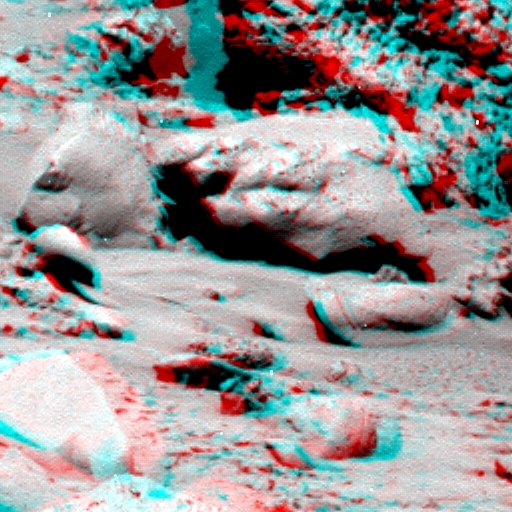 ![]() Regisztrált tag #409 Regisztrált: v febr 05 2012, 09:25Üzenetek: 172 | Horpad! Ez még a nyári gyreksapkánál is bizarrabb ötlet! De kizárni nem lehet, mármint a speciálisan hasadozott különleges kőzet alakzatot. Az a fene nagy helyzet, hogy a "nyári kalap" balpereme alatt látható árnyék annyira fekete, hogy semmiféle világosság felnyomás nem segített, azért is bátorkodtam az anaglif kép alapján egy vékony anyagból álló karimaként beazonosítani. A "sapkán" mellesleg még a sapkát alkotó cikkelyek összevarrási vonalait is észlelni lehet (pláne veszteség nélküli tif képen, ez sajna itt csak jpeg). Amire a baloldali nyilacskád mutat, meglepő módon inkább baseball sapkát formázó alakzat, amely félig letakar egy furcsa, kis koponyaszerű formájú követ (már amennyire a felbontóképesség ezt a látványt lehetővé teszi). Sajnos, a "baseball sapka ellenzője" és a gömbölyű része közti esetleges kapcsolatot nem lehet korrektül látni, mivel az is olyan mélyárnyékban van, hogy semmiféle világosítás nem segít. [ Módosítva k márc 20 2012, 11:32 ] | ||